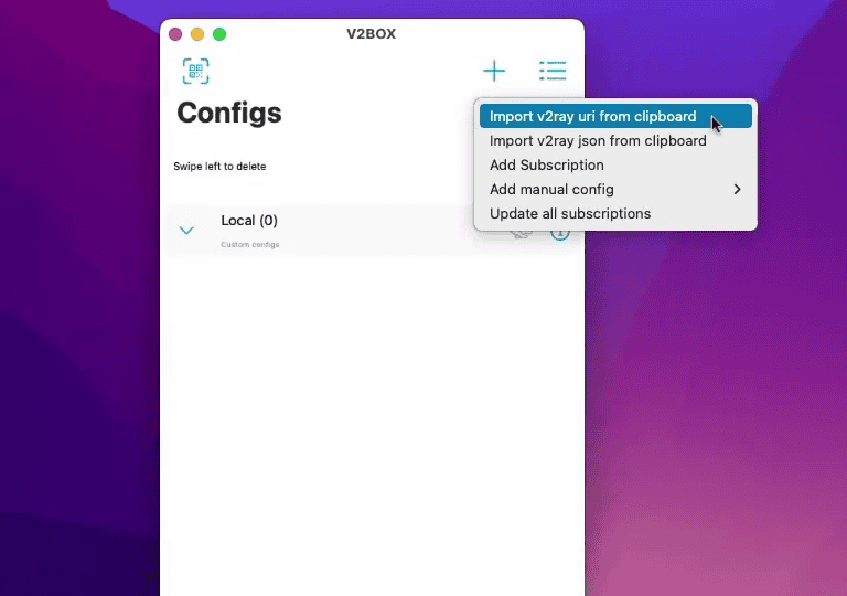 برای اتصال به VPN در مک V2Box را نصب کنید و سپس مراحل راه اندازی برنامه را با دقت انجام دهید.